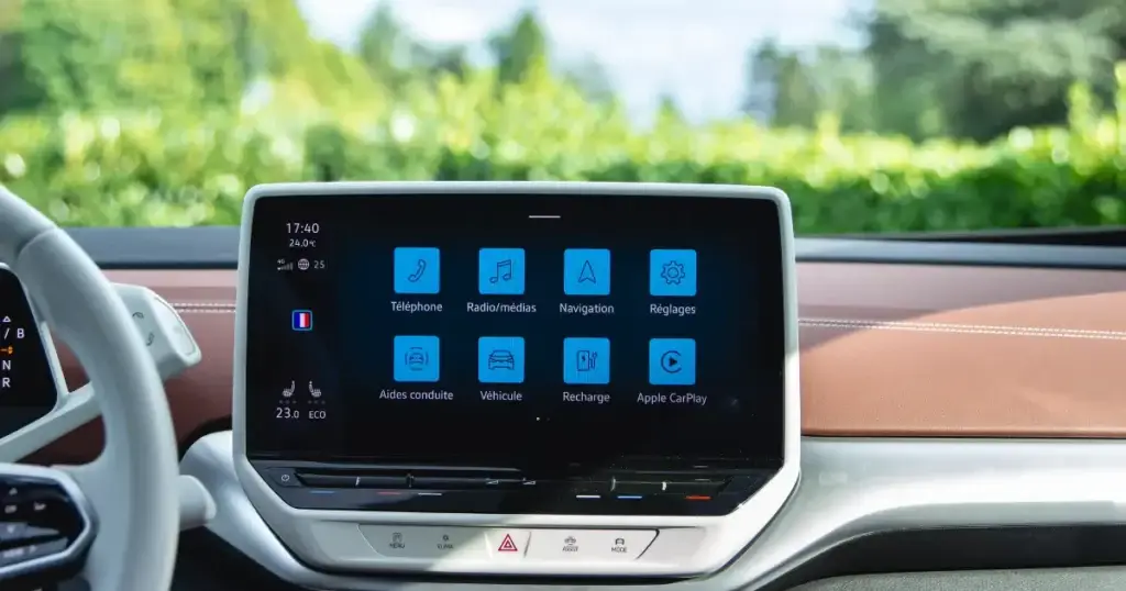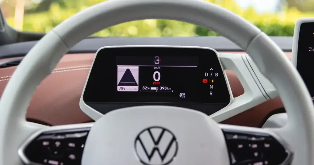Assez parlé de l’extérieur, il est désormais temps de nous installer à bord. À vrai dire, si vous avez déjà eu l’opportunité de vous mettre au volant d’une Volkswagen ID.4, vous ne serez pas dépaysé puisque les deux SUV partagent le même poste de conduite. C’est bien simple, tout est strictement identique, et c’est plutôt logique à vrai dire, car le but est aussi de ne pas déstabiliser la clientèle. Nous retrouvons donc nos marques à bord de l’ID.5, qui s’offre un grand écran facile de 12 pouces embarquant le système Discover Pro Max. Si celui-ci est très beau, il nécessite tout de même un certain temps d’adaptation et manque de praticité sur certains points, notamment en ce qui concerne le réglage de la climatisation.
